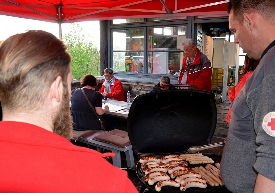Während sich die Rotkreuzler und Studenten bei kühlen Getränken sowie bestem Wetter austauschten und die vielen einzigartigen Stücke des Museums – neu und alt - in Augenschein nahmen, brutzelten schon gutriechende Leckereien auf dem Grill unter den wachsamen Augen von DRK-Bildungsreferent Thomas Moll. Bis in die Abendstunden feierte man schließlich den Ehrentag des Rotkreuz-Gründers Henry Dunant - bei bester Stimmung und malerischem Blick auf den Rursee.
