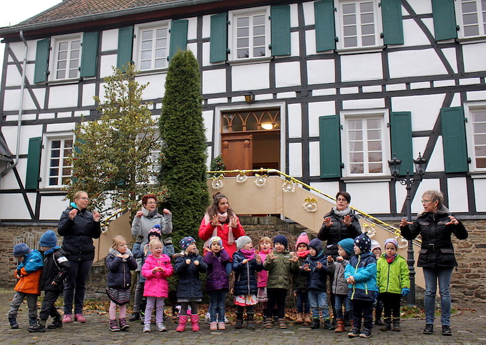 Zum Dank sangen die Knirpse zwei Lieder – und zwar zum Teil auch in Gebärdensprache, denn die wird im Schönauer Kindergarten gelehrt, weil einige der Kinder nicht sprechen können und natürlich nicht ausgeschlossen werden aus dem normalen Kindergartenalltag.
