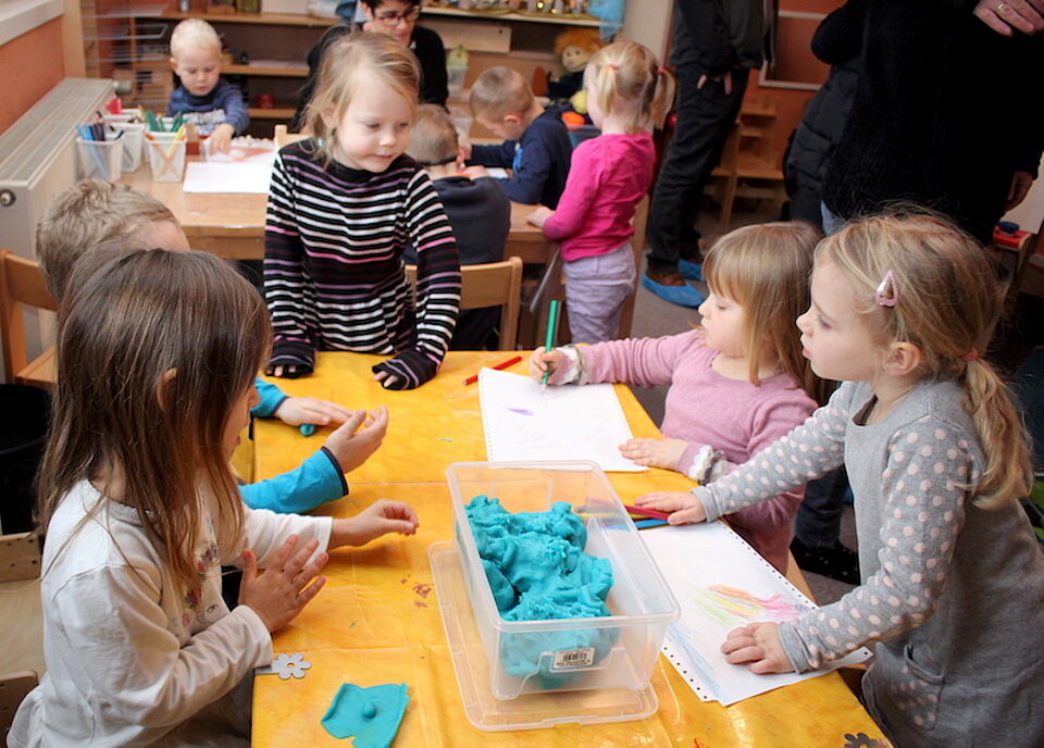 Die Kinder in der Gruppe, die nun – laut Bürgermeisterin Sabine Preiser-Marian für zwei Jahre – ins ehemalige Schönauer Pfarrhaus eingezogen ist, mussten bestimmte Voraussetzungen erfüllen: Sie dürfen keine Behinderung haben, denn der Zugang ist nicht barrierefrei, sie müssen trocken sein und dürfen auch mittags keinen Mittagsschlaf halten.