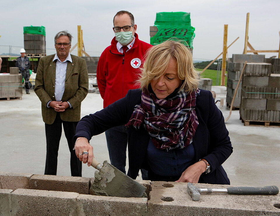 Bad Münstereifel-Mahlberg – Handwerkliches Geschick attestiert der Redakteur Manfred Metz in den Dienstagsausgaben der „Kölnischen Rundschau“ und des „Kölner Stadt-Anzeiger“ der Bad Münstereifeler Bürgermeisterin Sabine Preiser-Marian. Und zwar, weil sie bei der Grundsteinlegung des neuen Rotkreuz-Kindergartens in Mahlberg geschickten Umgang mit der Maurerkelle gezeigt hatte.