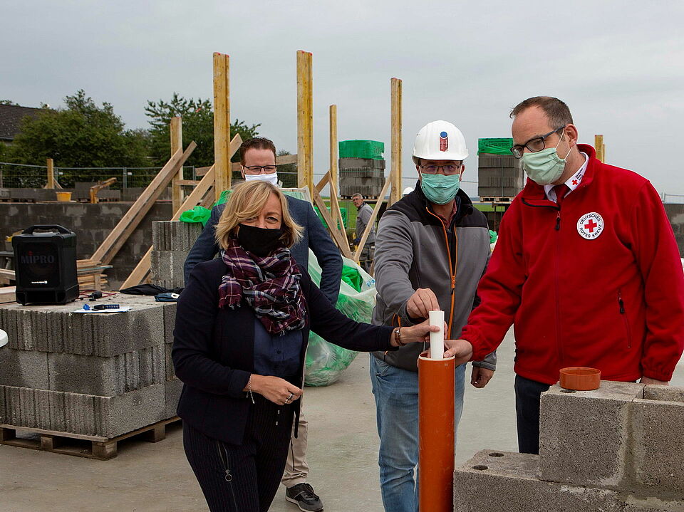Ralf Krutwig, der Bereichsleiter Kindertagesstätten und stellvertretende Geschäftsführer des Roten Kreuzes im Kreis Euskirchen, assistierte der kurstädtischen Verwaltungschefin. Das Rote Kreuz soll in Mahlberg den neuen Kindergarten betreiben.