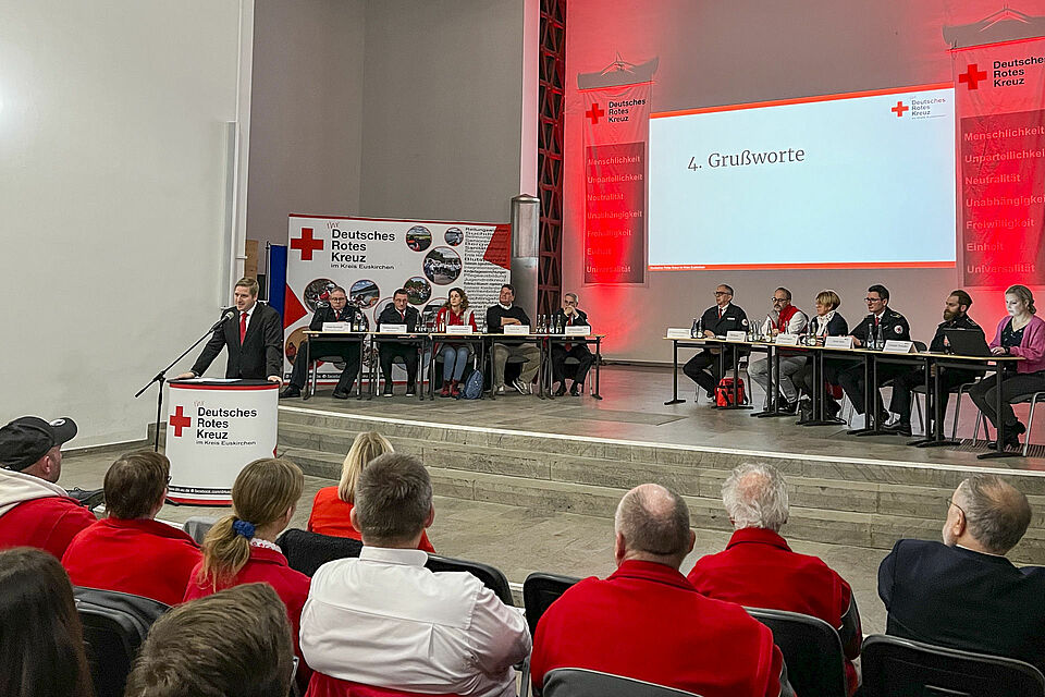 Das Rote Kreuz sei für die knapp 200 000 Menschen, die dort leben, nahezu unverzichtbar, so Landrat und Schirmherr Ramers. Vorsitzender Karl-Werner Zimmermann nannte einige Aufgabengebiete vom Babyschwimmen, Kindergartenplätzen und Offenen Ganztagsschulen über Blutspende, Rettungsdienst, Katastrophenschutz, Erwachsenenbildung und Seniorenbetreuung bis hin zum Rotkreuzmuseum für humanitäres Völkerrecht in Vogelsang.
