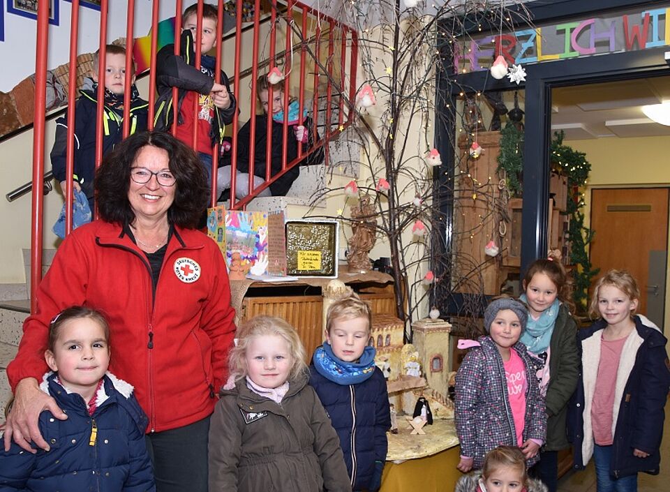 Rotkreuz-Chef Rolf Klöcker war ebenso zu Gast wie Ina Terne, die stellvertretende Rotkreuz-Vorsitzende Edeltraud Engelen und ihre Tochter Silke Lehnen. Der Erlös des Weihnachtsmarktes kommt immer Kindergartenzwecken zu wie dem Besuch von Kulturveranstaltungen, Ausflügen zum Beispiel ins Phantasieland oder Anschaffungen und Einrichtungen wie der eines Klangspiels (2018) für den Spielplatz, von dem auch die „Dörps-Pänz“ profitieren und des Snoezel-Raums.