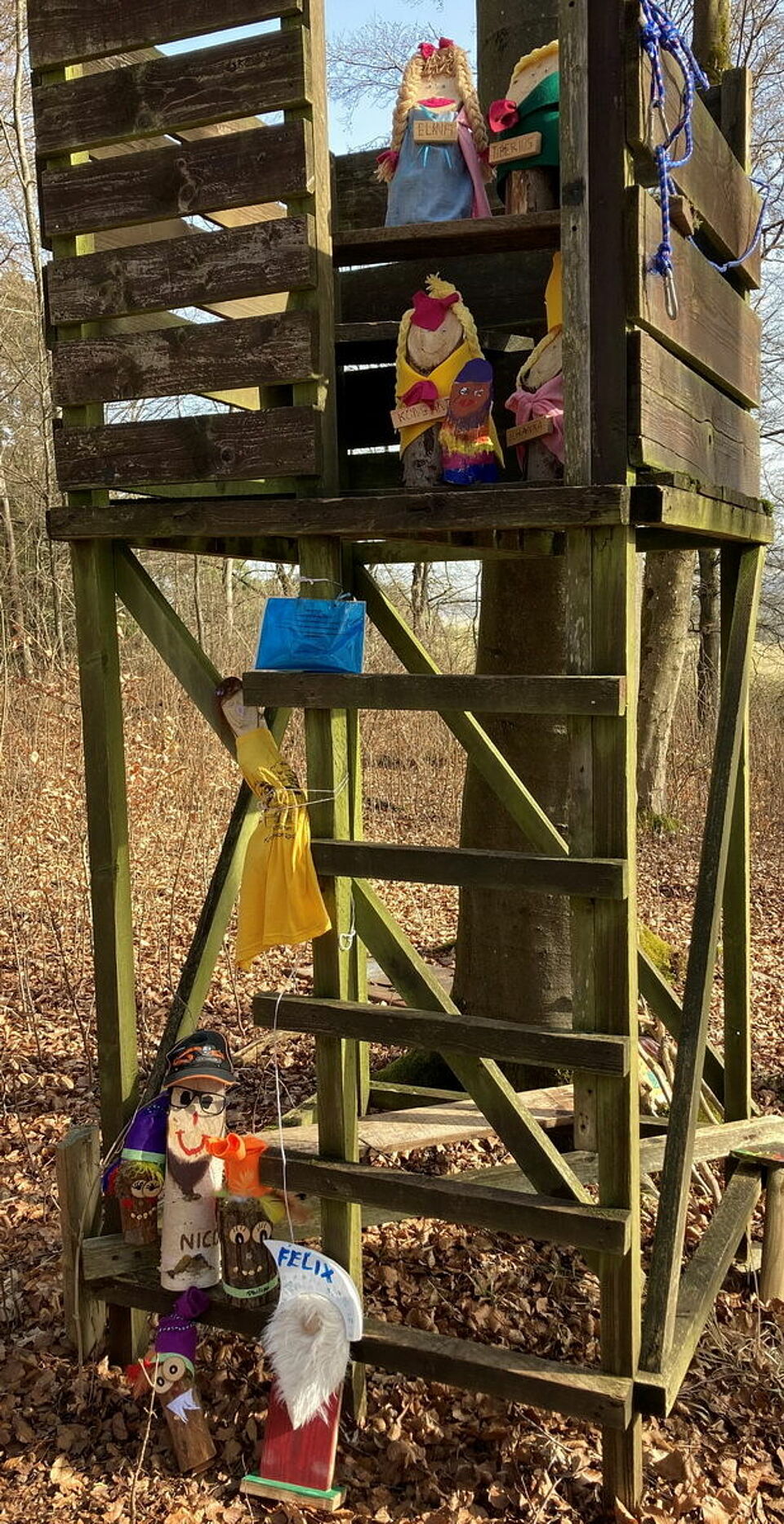 Zentrale Figur im verlängerten Lockdown-Geschehen ist der „Waldwichtel“ der DRK-Einrichtung, der sich in einem Brief an die Kinder gewandt und darum gebeten hat, ihn „em Bösch“ zu besuchen. Damit man ihn auch findet, werden GPS-Apps in Anspruch genommen, außerdem stehen eine Wegbeschreibung und Fotos der Umgebung zur Verfügung.