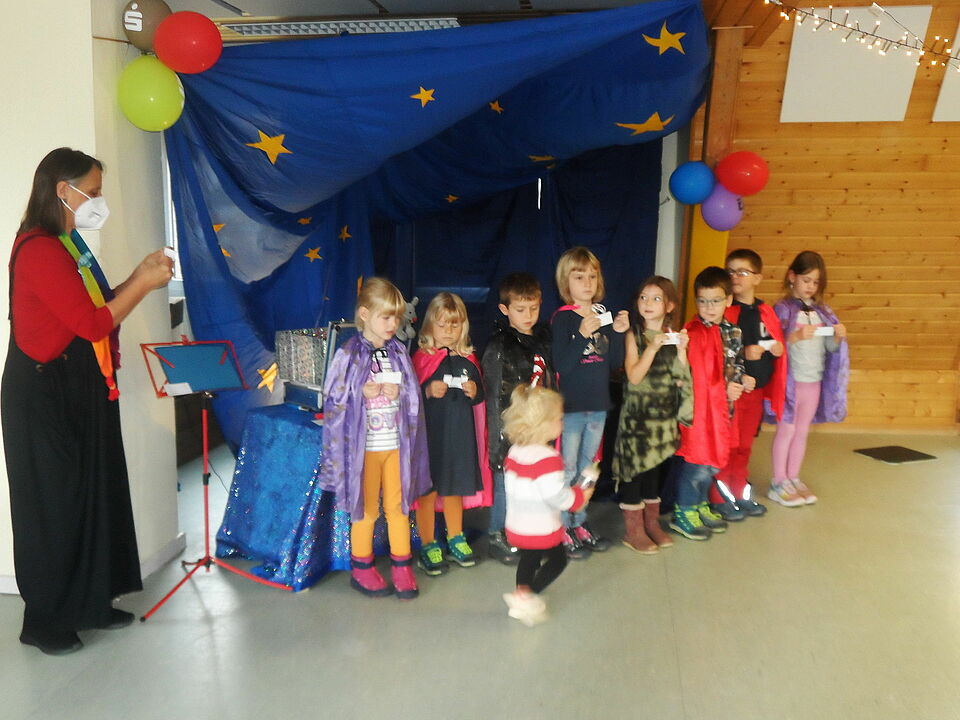 „Wir haben einfach das Beste daraus gemacht, was ging“, so die Leiterin Rita Schmitz – und da nur ein Erwachsener pro Familie pandemiemäßig zugelassen werden konnte, und die 3-G-Regel galt und Abstand eingehalten werden musste, wurde der geplante Workshop der Zauberlehrlinge kurzerhand vom Erdgeschoss ins Erste Obergeschoss verlegt. Zum Zaubern-Erlernen hatte das Team um Rita Schmitz eine Magierin verpflichtet, so Kindergartenmitarbeiterin Marion Poensgen.