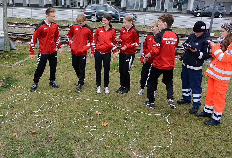 Mit 38 Punkten Vorsprung auf die Mannschaft aus Mecklenburg-Vorpommern konnten die DRK-Wasserwacht-Dahlem-Jugendlichen Carina Klinkhammer, Fiona Hase, Karla Göser, Laetitia Weber, Mira Wawer, Luka und Torben Kampmann sowie Tobias Meyer in der Altersklasse III (14-16 Jahre) ihren Deutschen-Meister-Titel verteidigen. Zu Recht stolz waren ihre Trainer Carina Meyer und Simon Hase.