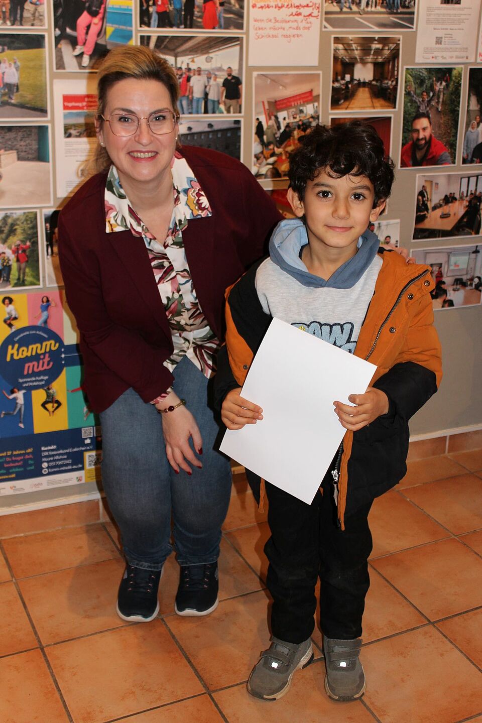 Demokratie lernt man nicht allein aus Büchern. Man muss sie sehen, hören, hinterfragen und erleben. Damit das gelingt, gibt es das Projekt „Komm mit – Demokratie zum Anfassen“, das die Integrationsagentur und die Servicestelle Antidiskriminierungsarbeit des DRK Euskirchen in diesem Jahr zum zweiten Mal im Auftrag der Stadt Euskirchen durchgeführt hat. Die Ergebnisse (und Erlebnisse) wurden jetzt bei einer Feier im Café Henry der Öffentlichkeit präsentiert. Wie schon im letzten Jahr waren die Wände auch diesmal wieder gespickt mit bunten Fotos, die die Geschichten eines spannenden Halbjahrs erzählten. Mit sehenswertem Ergebnis: Aus den Händen der stellvertretenden Bürgermeisterin Sandra Eisermann erhielten die dreißig Teilnehmenden ihre Zertifikate. Stolz und strahlend hielten die neu zugewanderten Kinder, Jugendlichen und jungen Erwachsenen die Teilnehmer-Urkunden in die Höhe. Das meist gehörte Wort an diesem Nachmittag – eindeutig: „Danke!“