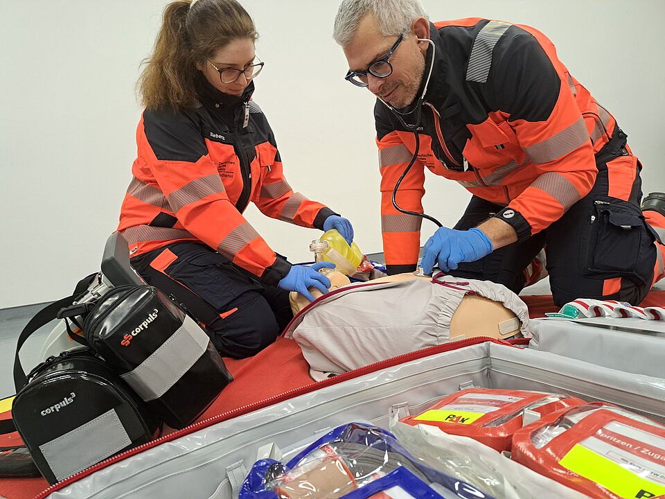 Hier kann sich jeder ausprobieren. An Puppen und Biosimulatoren dürfen die Besucherinnen und Besucher hier Rettungsmaßnahmen in realistischen Szenarien ausführen, die „unter die Haut gehen“. Zudem kann man auch einen voll ausgestatteten Rettungswagen besichtigen. Dabei steht Alexander Schiffmann, Leiter der Akademie, den Interessierten mit einem Team aus erfahrenen Lehrkräften zur Seite.