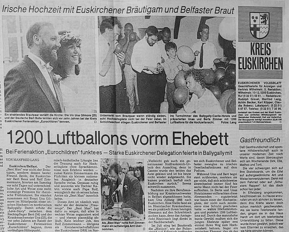 Die Aktion Euro-Children zog weite Kreise. Journalisten aus dem Kreis Euskirchen wie Hermann Eckstein, Karl Küpper oder Manfred Lang unterstützten die Aktion und fuhren selbst nach Belfast. Das ZDF berichtete in der Sendung „Gott und die Welt“ über die Euskirchener Aktivitäten. „Danach stand das Telefon bei uns nicht mehr still“, sagt Grobelny, „von Flensburg bis München wollten Gasteltern Kinder aus Nordirland zu sich nehmen“.