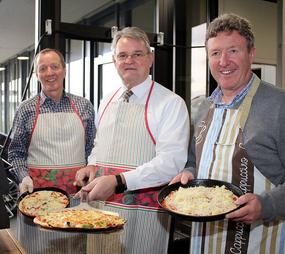 Am Nachmittag enthüllten die Projektmitarbeiter auch noch zwei Transparente und bildeten so einen Gang. Durch das Tor, über einen roten Teppich, konnten die Besucher des Friedenstages gehen, rechts und links, hinter den Transparenten, standen weitere Besucher Spalier und applaudierten.