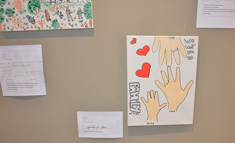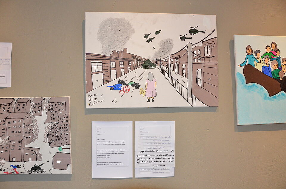 „Was wir hier zeigen, ist die schonungslose Realität. Es sind persönliche Momentaufnahmen, die Teil einer größeren Geschichte sind. Obwohl die Perspektiven und Stile dabei ganz unterschiedlich sind, erkennt man in ihnen oft dasselbe wieder. Trauer und Angst genauso wie Hoffnungen und Träume. Das war der Sinn hinter der Kunstaktion und wir sind sehr beeindruckt von den entstandenen Werken“, erklärt Thomas Weber von der DRK-Integrationsagentur, der die Aktion gemeinsam mit Sabine Heines vom DRK-Mehrgenerationenhaus und Judith Raß von der DRK-Servicestelle „Antidiskriminierungsarbeit“ ins Leben gerufen hatte.