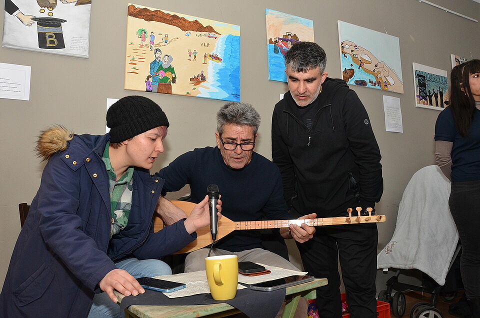 Einen künstlerischen Beitrag hat auch Kayan Mithat in Form von orientalischen Klängen des Saz, einem Saiteninstrument, mitgebracht. Gemeinsam mit Rabia Noyan singt er zu bewegenden Melodien, bevor auch die Anwesenden begeistert mitmachen, klatschen und tanzen.
