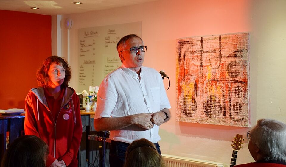 Schon jetzt haben die Verantwortlichen das nächste Konzert in Planung. Winfried Bode, der bekannte Kölner Singer-Songwriter gibt im Café ein Mitsingkonzert am 24. August, ab 18 Uhr. Martina Unterharnscheidt, die Europakünstlerin aus Bad Münstereifel, stellt dazu ihre Bilder aus.