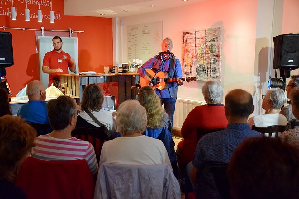 Rund 50 Besucher waren gekommen und erfreuten sich an dem Konzert mit Wohnzimmer-Wohlfühl-Atmosphäre. „Mir geht das Herz auf“, freute sich auch DRK-Kreisvorsitzender Karl-Werner Zimmermann angesichts der prall gefüllten Sitzreihen. Das Haus soll zu einem Ort der Begegnung und des Austauschs werden - von Mensch zu Mensch und über Generationen und Kulturgrenzen hinweg. Erst im Mai hatte das DRK das Café im Mehrgenerationenhaus wieder eröffnet – mit neuem Konzept, neuem Team und neue Gestaltung.