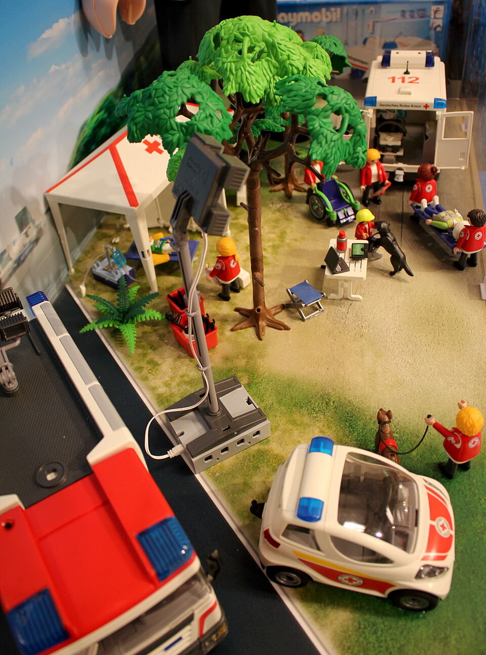 Der fränkische Spielwarenhersteller bietet eine fünfteilige Kollektion zum Thema Rotes Kreuz an: ein DRK-Mega-Set, einen DRK-Gerätewagen, ein DRK-Rettungsflugzeug, einen DRK-Rettungswagen und ein DRK-Versorgungszelt mit Notarzt-Einsatzfahrzeug. Selbstverständlich wird es diese Kollektion, an der nicht nur Kinder, sondern auch Erwachsene Spaß haben, am Aktionstag anbieten. Die Kollektion war übrigens schon einmal vorhanden und am ersten Tag bereits vergriffen, sodass Playmobil mittlerweile nachgeliefert hat.