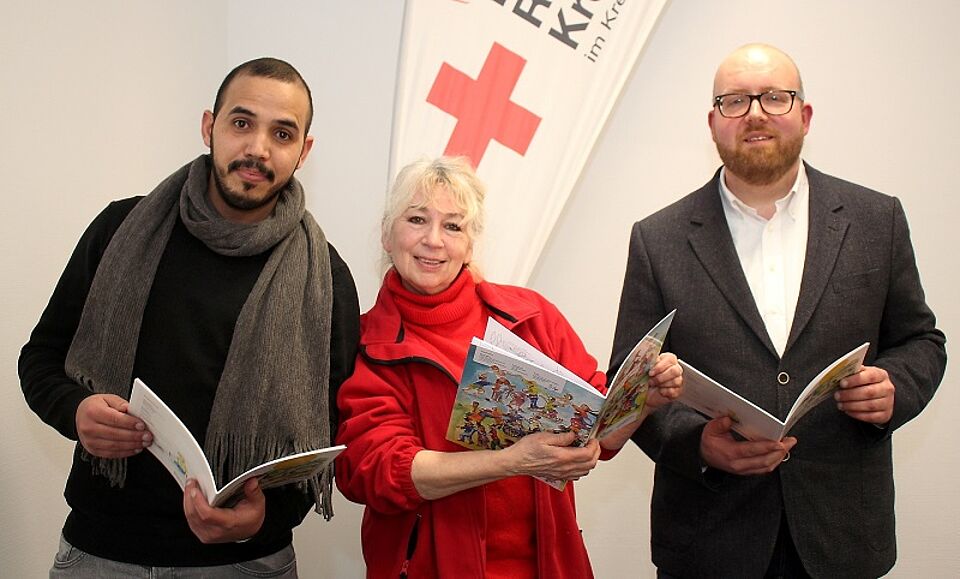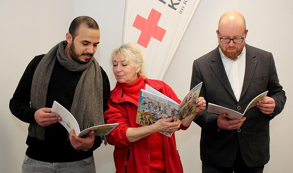 DRK-Integrationsagentur stellt zwei Bücher vor – Mehrsprachige bunt illustrierte Bedienungsanleitung für Eltern und Kinder – Wimmelbilder zum Ausmalen