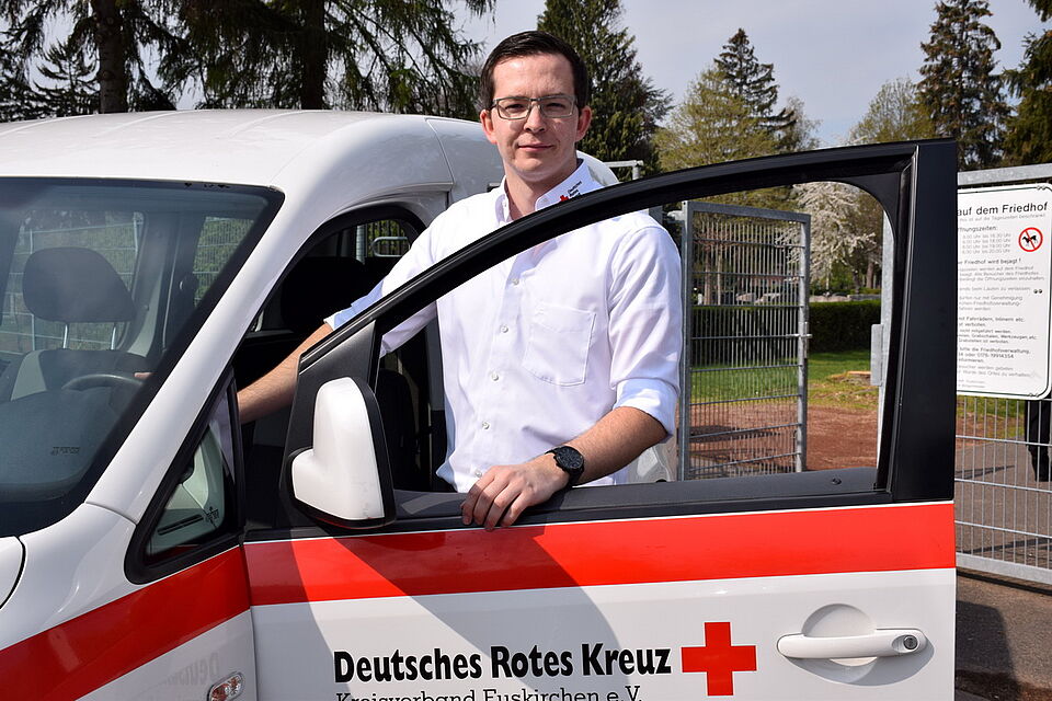 Moritz Wolber ist DRK Fahrdienstleiter. „Wenn nötig, helfen wir auch mit kleinen Handreichungen“, erläutert er. So räume man Verblühtes weg, setze Schalen ab oder platziere Grablichter.