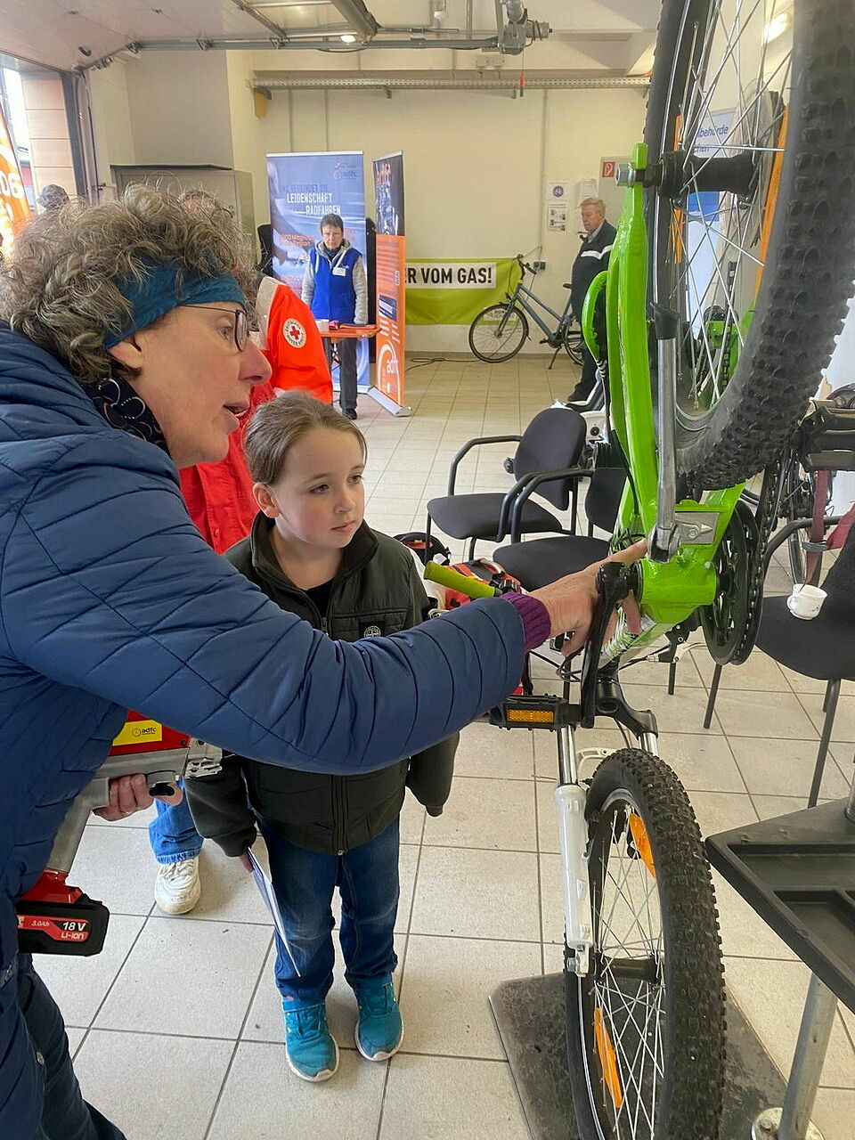 So kamen auch aus dem Umland und sogar aus Bonn oder dem Rhein-Erft-Kreis zahlreiche Besucher jeden Alters, um die vielen Angebote hinter dem Mechernicher Rathaus zu nutzen. Die einen interessierten sich für den „Fahrrad-TÜV“, bei dem man sein Gefährt checken lassen und sich einen Aufkleber holen konnte, andere ließen ihr Rad codieren oder informierten sich zu E-Bikes und Pedelecs. Kleinere Schäden an ihren Gefährten konnten die Besucher durch „Fahrrad Schulz“ reparieren lassen.