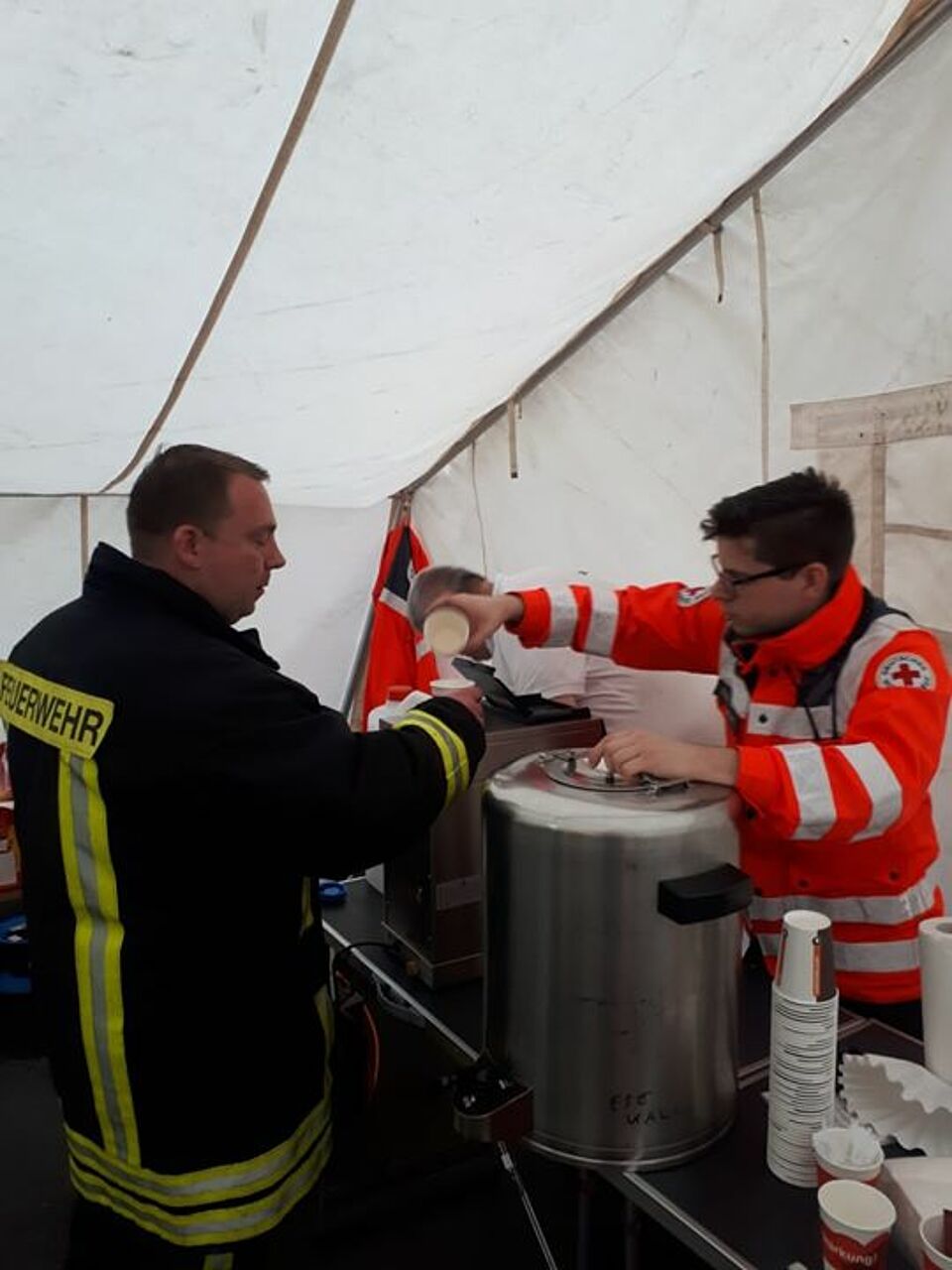 Unsere Rotkreuzler aus den Ortsvereinen Kall und Euskirchen sind seit heute Morgen im Verpflegungseinsatz für die Feuerwehr.