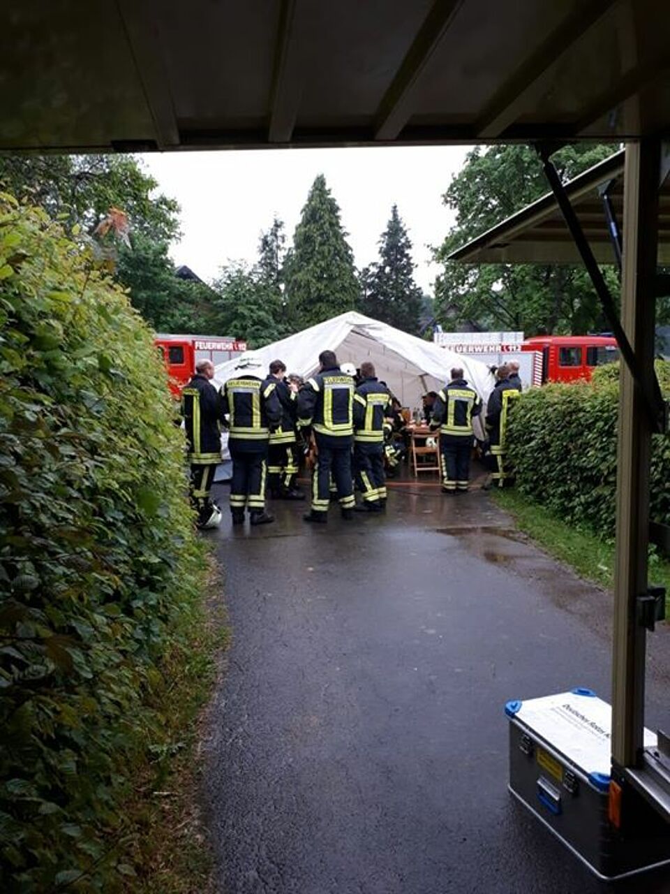 In der Nacht geriet in Hellenthal - Ingersberg eine Scheune in Brand. Die 50 eingesetzten Feuerwehrleute wurden durch die Betreuungsgruppe Kall mit Heiß- und Kaltgetränken und einer warmen Mahlzeit versorgt. Die Euskirchener Betreuungsgruppe übernimmt aktuell die Verpflegung von Feuerwehrkameraden in Euskirchen. Dort sind auf Grund der starken Regenfälle wieder mehrere Straßenzüge und Keller überschwemmt.