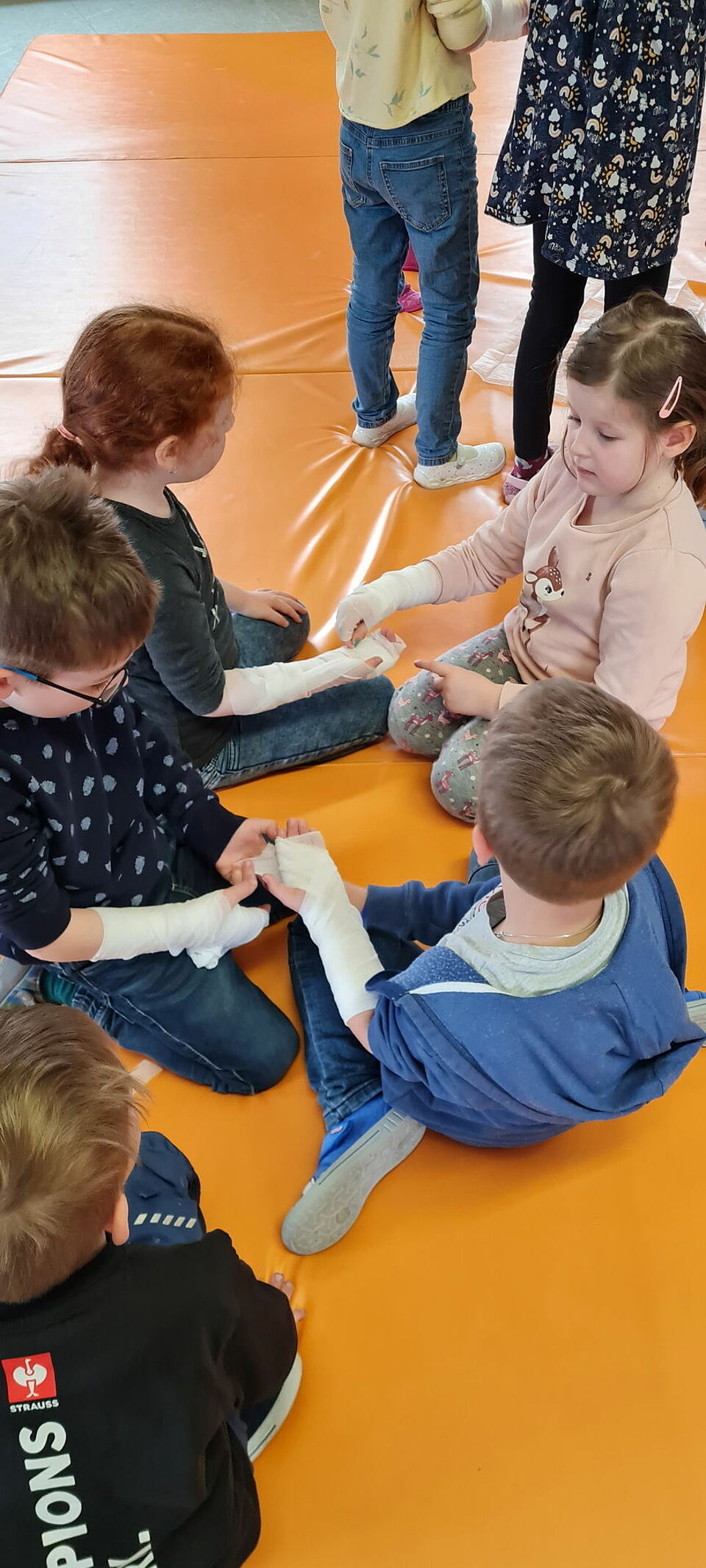 Des Weiteren erkundeten sie den Inhalt eines Verbandskastens und lernten, wie man Verbände und Pflaster richtig anlegt. „Durch das aktive Einbeziehen der Kinder wurden Ängste abgebaut und ihr Bewusstsein gestärkt, dass sie auch in Notsituationen helfen können“, so die Kitaleiterin.