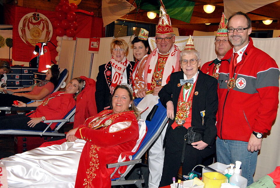 Gemäß dem Motto „Jeder Jeck ein Lebensretter!“ war es dem Kommerner Prinzenpaar Guido I. und Sabine II. (Heske) mit Unterstützung der KG Greesberger gelungen, insgesamt 126 Blutspender, darunter fünf Erstspender – und damit potenzielle Lebensretter – zu mobilisieren. Das ist noch einmal eine deutliche Steigerung im Vergleich zum Vorjahr, als exakt 100 Freiwillige zum kollektiven Aderlass in der bunt geschmückten Kommerner Bürgerhalle antraten.