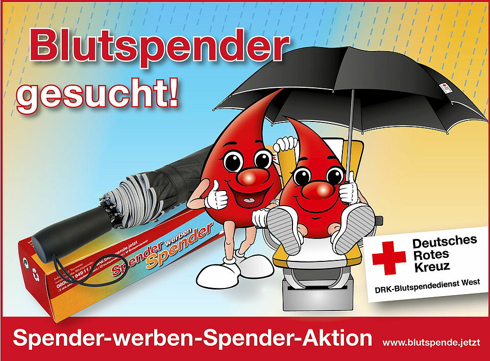 Aus diesem Grund – und auch weil Blutspender selbst besonders überzeugend sind – gibt es aktuell eine „Blutspender-werben-Blutspender“-Aktion: Wer jetzt eine Freundin oder einen Kollegen mitbringt, der die Blutspende zum ersten Mal ausprobiert, bekommt direkt auf dem Termin einen schicken Regenschirm geschenkt.