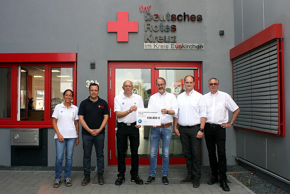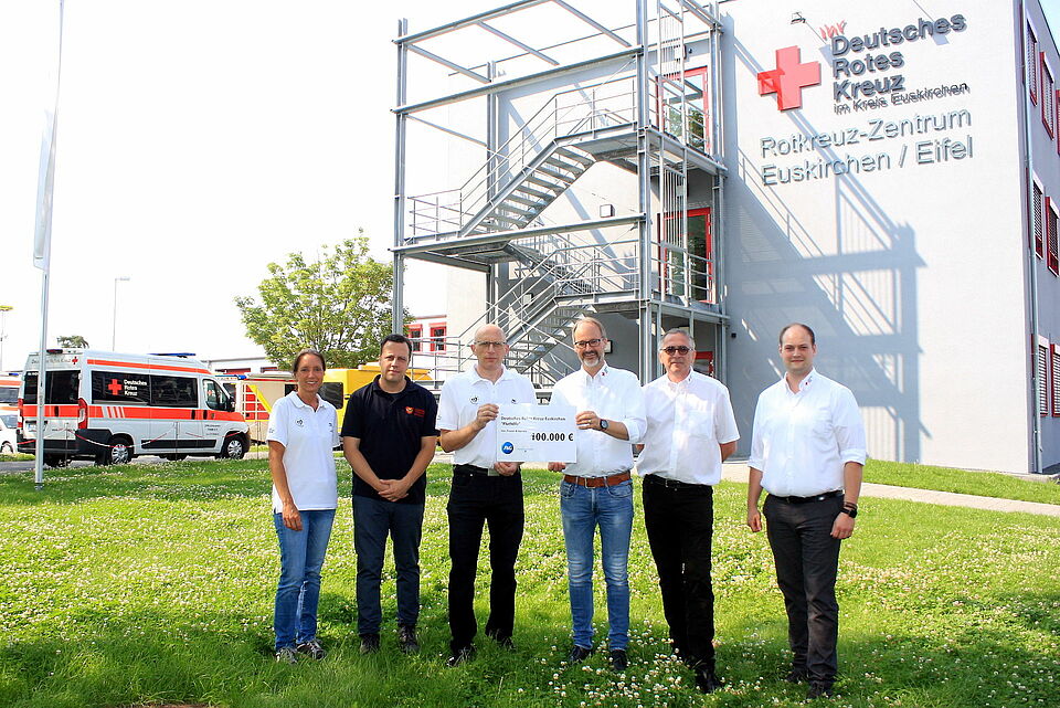 Euskirchen – Um die schweren Folgen der Unwetter-Katastrophe zu bewältigen, benötigen viele Menschen und Familien in den Krisenregionen Hilfe und ganz pragmatische Unterstützung. Das Deutsche Rote Kreuz (DRK) spielt dabei als zentrale Hilfsorganisation eine Schlüsselrolle. Um die Rettungskräfte vor Ort in ihrer Arbeit für die Menschen in Nothilfe und Wiederaufbau zu unterstützen, hat das Rote Kreuz im Kreis Euskirchen jetzt eine Spende in Höhe von 100.000 Euro von Procter & Gamble (P&G) erhalten.