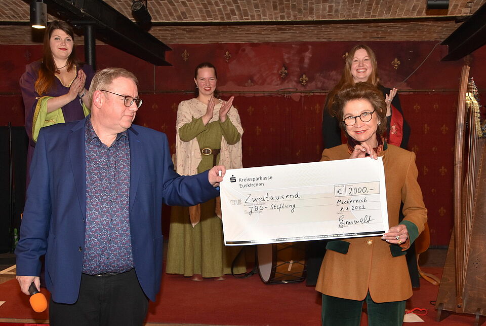 Mechernicher Praxisjubiläum Gummelt gipfelte in einer Spendenscheckübergabe auf der Burg Satzvey