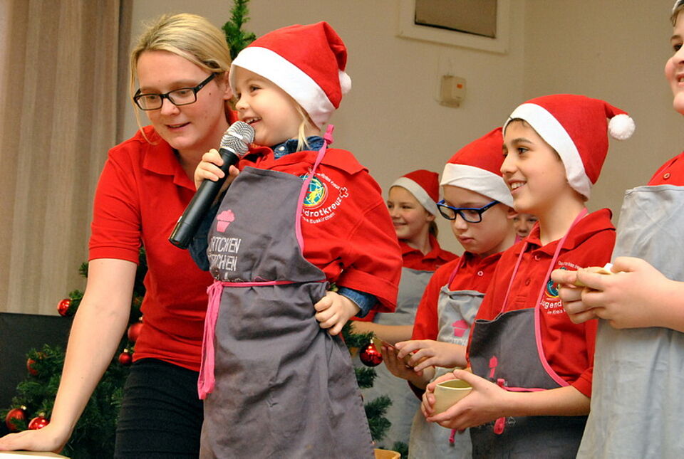 Die Plätzchen, die später an die Senioren verteilt wurden, hatten die Kinder auch in diesem Jahr mit professioneller Unterstützung backen dürfen. Bereits seit mehreren Jahren lädt Matthias Ludwigs, Inhaber der Kölner Patisserie „Törtchen, Törtchen“, das Mechernicher Jugendrotkreuz in seine Backstube ein. Unter seiner Anleitung kneteten die Kinder Plätzchenteige und backten kiloweise Spitzbuben, Kokosmakronen, Vanillekipferl und Zimtsterne, in deren Genuss nun die Gäste der Weihnachtsfeier kamen.