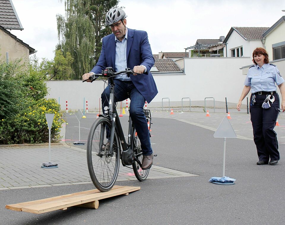 Polizei und Kreissportbund hatten außerdem einen Fahrradparcours aufgebaut. Der konnte zwar auch mit E-Bikes durchfahren werden. Allerdings nur ohne zugeschalteten Motor, weil er dafür zu eng war. Außerdem befanden sich Hindernisse wie eine Wippe, die mit dem Rad überwunden werden mussten, auf der Strecke.