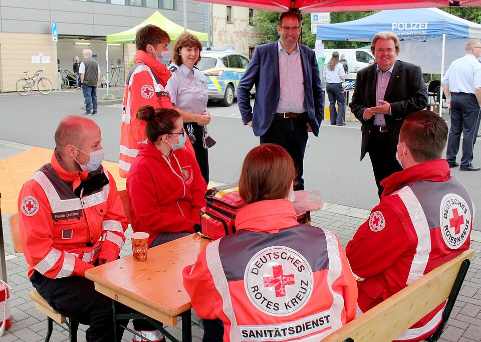 Auch Bürgermeister Dr. Hans-Peter Schick sowie der Landtagsabgeordnete Klaus Voussem, der in Düsseldorf verkehrspolitischer Sprecher der CDU-Fraktion ist, waren als Gäste vor Ort und ließen sich von Mechernichs Ortsvorsteher Günther Schulz sowie Polizeioberkommissarin Anke Weber die Aussteller zeigen.