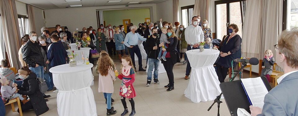 Bei den Fürbitten wurde nicht nur die Kindergartenleiterin und Erzieherin Marlies Lottermoser in den Blick genommen, sondern auch die Frau, Mutter und Oma. Auch Ehemann Helmut, die Söhne Mirco und Marcel, Schwiegertöchter und Enkelkinder waren sowohl in der Kirche als auch beim anschließenden Empfang im Johanneshaus mit von der Partie.