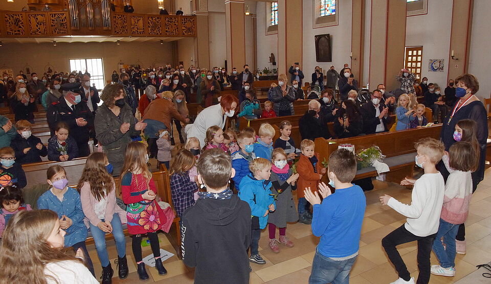 Mechernich – Einen ganz großen und auch großartigen Abschied bescherten Kinder und Erwachsene der scheidenden Kindergartenleiterin Marlies Lottermoser (63) in der Pfarrkirche St. Johannes Baptist. Dort leitete Pfarrer Erik Pühringer einen ökumenischen Wortgottesdienst, der in großen Teilen von Marlies Lottermosers ehemaligen Schützlingen gestaltet wurde.