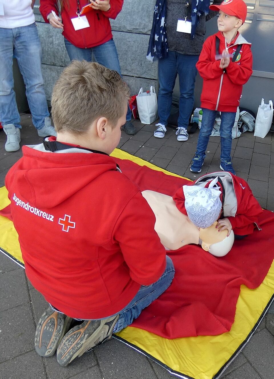 Mechernichs stellvertretender Bürgermeister Günter Kornell, der sich von Organisator und Kreisverbandsarzt Frank Gummelt den „Parcours“ zeigen und erklären ließ, war begeistert: „Es ist toll, dass die Rotkreuzler heute sichtbar in der Stadt unterwegs sind und zeigen wie man hilft. Vielleicht inspiriert es noch mehr Menschen dazu, die eigenen Kenntnisse bei Bedarf noch einmal aufzufrischen.“