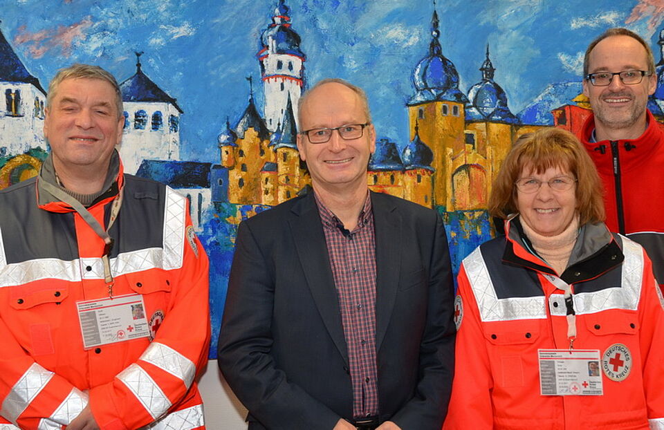 Einige Tage vor Beginn der Sammlung trafen sich die Sammler und der Mechernicher Rotkreuz-Ortsvereinsvorsitzende und Kreisgeschäftsführer Rolf Klöcker jetzt bei Bürgermeister Dr. Hans-Peter Schick, um über die bevorstehende Haus- und Straßensammlung zu berichten und ein gemeinsames Bild aufzunehmen, damit die Bürger Sonja Thüngen und Willi Kurth schon kennen.