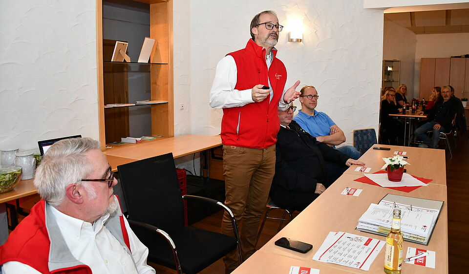 Vorsitzender Rolf Klöcker sprach den Aktiven im Ortsverein seine große Anerkennung für ihren Einsatz während der Flut und der Coronapandemie aus: „Außerdem habt Ihr Euch »nebenbei« auch noch in bewunderungswürdiger Weise um jeweils 50 bis 70 Flüchtlinge in der Stadt gekümmert.“ Es sei „schon beeindruckend“, was die Bereitschaft um Sascha Suijkerland alles auf die Beine stelle.