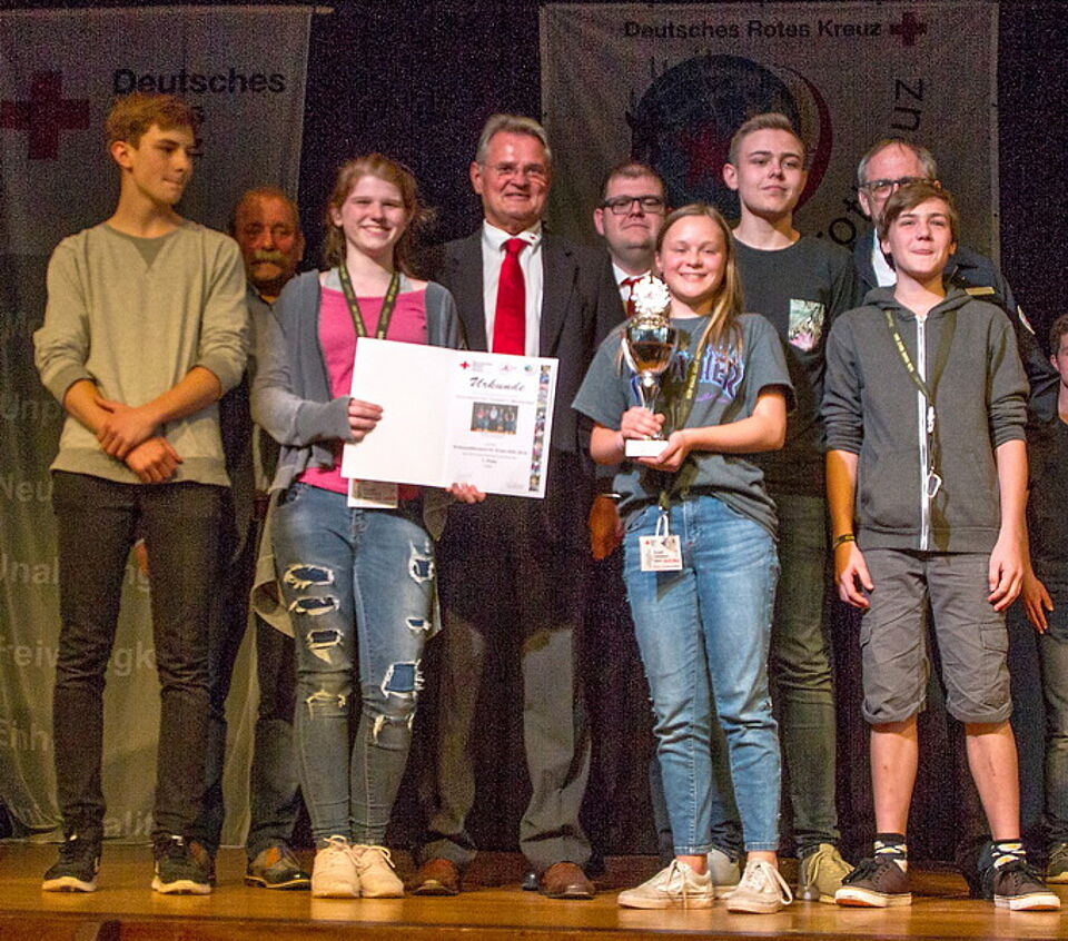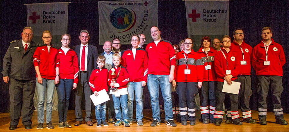 Zur Siegerehrung und Preisverleihung waren neben Karl Werner Zimmermann, Vorsitzender des DRK-Kreisverbands Euskirchen, und Stephan Schmitz, DRK-Kreisbereitschaftsleiter, auch Landrat Günter Rosenke und Mechernichs Vize-Bürgermeister Wolfgang Weilerswist erschienen.