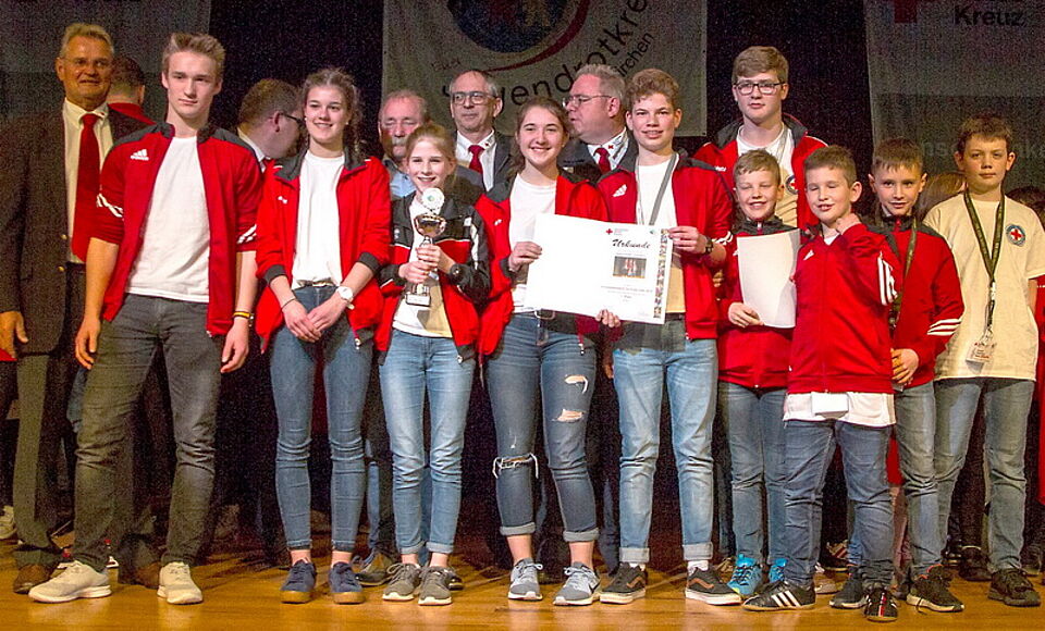 Bei der Begrüßung lobte Simon Jägersküpper in seiner Funktion als Jugendrotkreuz-Kreisreferent alle Teilnehmer bereits vorab für ihr Engagement und ihren Einsatz: „Und vergesst nicht, ihr seid alle jetzt schon Gewinner, ihr schaut nicht nur zu, ihr handelt auch.“ Besonders erwähnenswert sei, dass in diesem Jahr wieder zwei „Mini-Gruppen“ des Mechernicher Jugendrotkreuzes dabei seien. „Die sind teilweise noch so jung, dass wir ihnen die Prüfungsfragen vorlesen müssen.“