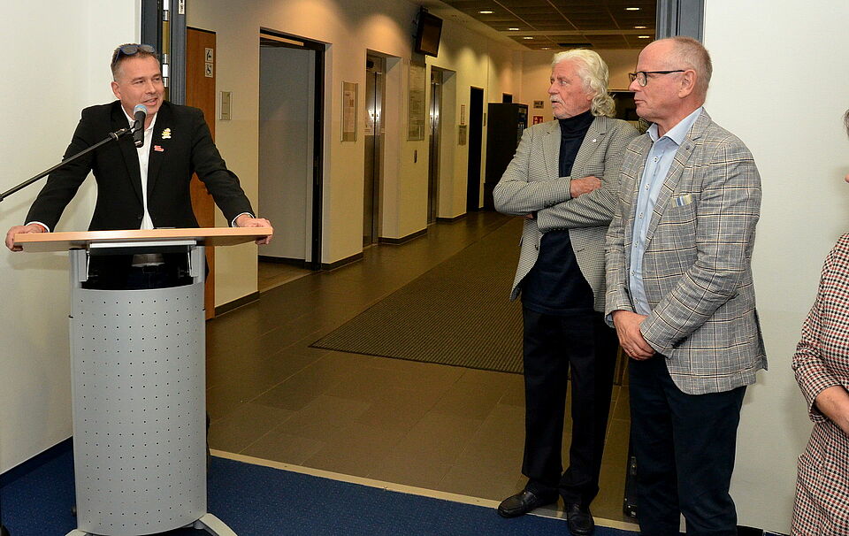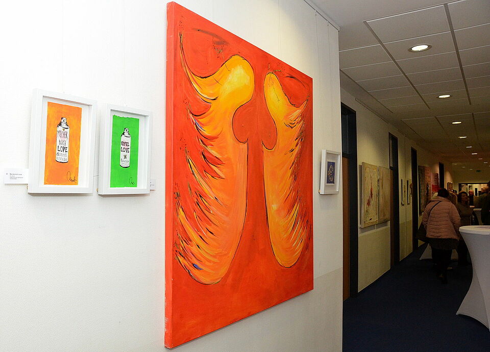 Kurator Franz Kruse scherzte in seiner Ansprache: „Nicht alles, was an der Wand hängt, ist Kunst. Und nicht jeder, der lange Haare hat, ist Künstler.“ Bei Beate Mack sei er sich unterdessen sicher, dass es sich um eine Künstlerin und ihre Kunst handele… Ihm hätten Farbgebung und Technik, beispielsweise mit flüssigem Epoxidharz, sehr gefallen. Beeindruckt hätten ihn auch die vielen Facetten des großen Themas „Liebe“.