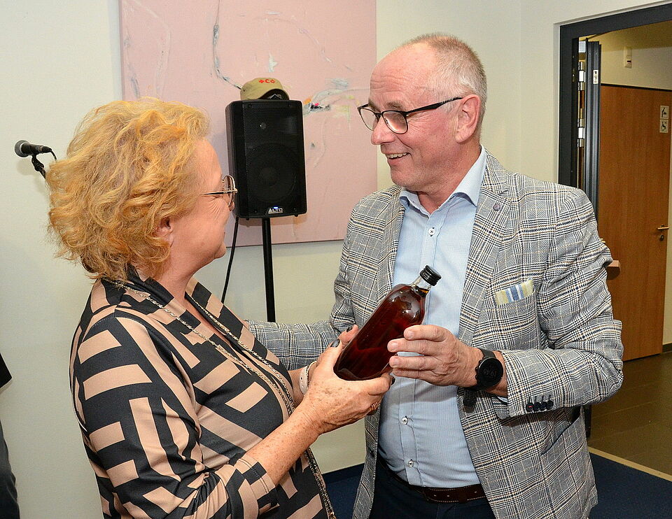Katia Franke gab eine Kaufempfehlung ab: „Ich wünsche mir, dass sich wieder mehr Leute Bilder kaufen, da diese einen immer wieder aufs Neue erfreuen können.“ Im Anschluss rezitierte sie unter großem Applaus ein Gedicht zum Thema des Abends und der Ausstellung.