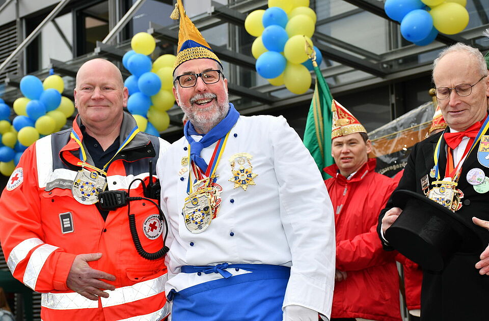 Über die Sicherheit der Narren wachte einmal mehr das Rote Kreuz, Ortsverein Mechernich, um den Gemeinschaftsleiter Sascha Suijkerland. „Charly“ Theißen holte den unermüdlichen Sanitäter auf die Bühne und verlieh ihm stellvertretend für die Kamerad/inn/en und den überaus aktiven Rotkreuz-Ortsverein Mechernich den Sessionsorden.