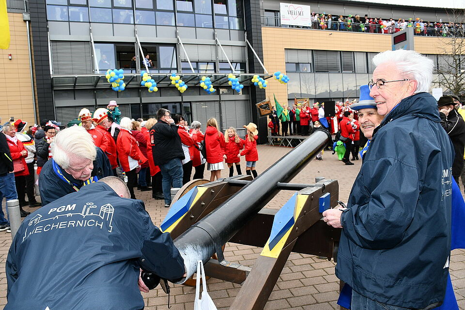 Nur das Geschütz der Prinzengarde, die in der laufenden Session 50. Geburtstag feiert, verschaffte sich Gehör wie eh und je. Dieses Jahr blieben die vor der Corona-Pandemie regelmäßig mit Böllerschüssen Kommerner Schützen und Freischärler beantworteten Artillerieattacken allerdings ohne jede Gegenwehr.
