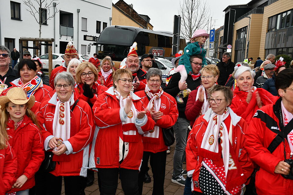 Gut hörbar war auch nach Thomas Hambachs Wasserbombenvolltreffer der Musikzug der Prinzengarde, der bereits seit 40 Jahren beim Sturm aufs Rathaus den Ton angibt. Auch Altkommandeur Addy Sechtem wurde in der Nähe des Prinzengarden-Geschützes gesichtet. Es gab im und vor dem Rathaus Kölsch und Alkoholfreies. Die Stimmung war schön, aber gefasst. Viele Jecken feierten anschließend in Lokalen, der Dreifachturnhalle und vor allem auf den Dörfern und zum Teil auch ausgelassen weiter „Wieverfastelovend“.