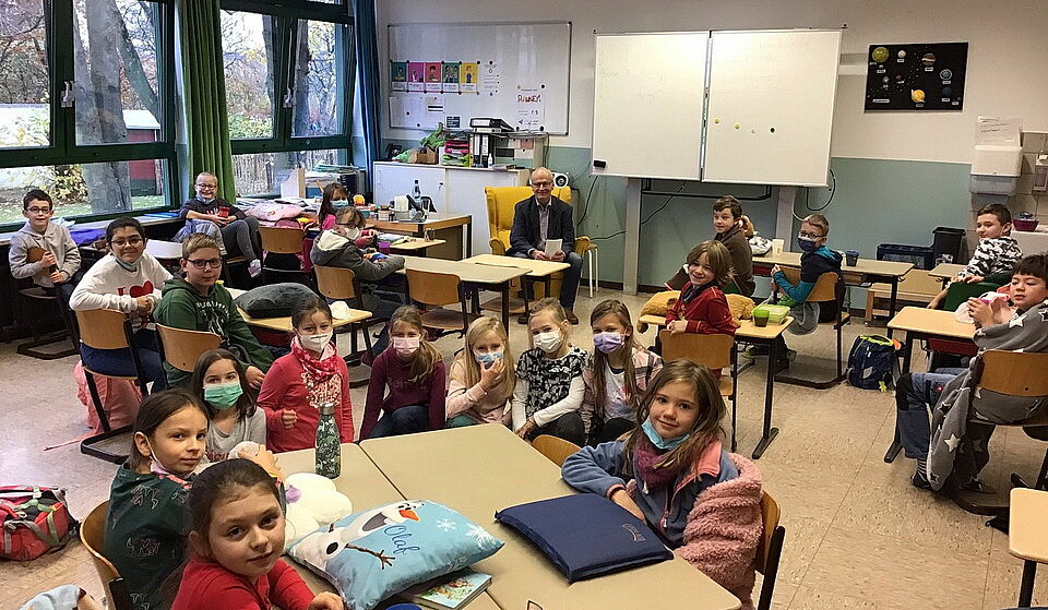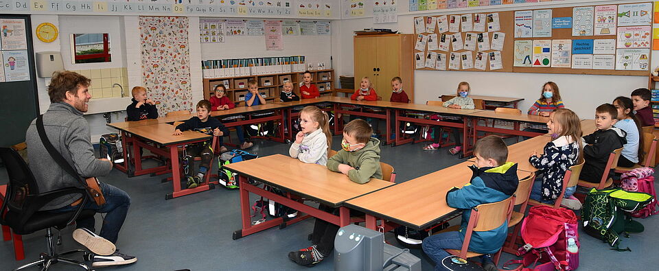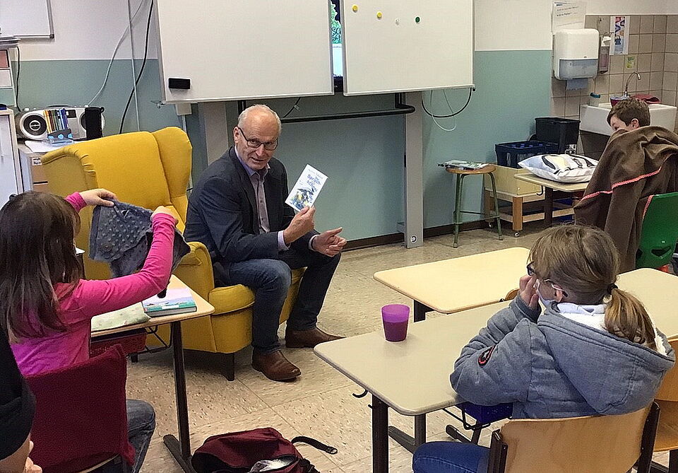 An der von Uli Lindner-Moog geleiteten Grundschule Mechernich lasen unter anderem auch Rotkreuz-Gemeinschaftsleiter Sascha Suijkerland, Kinderchefarzt Dr. Herbert Schade, Ex-Rektorin und Mechernich-Stiftung-Funktionärin Rita Gerdemann, die Polizeibeamtin Lara Mertens und GAT-Direktor Mischa Kreitz.