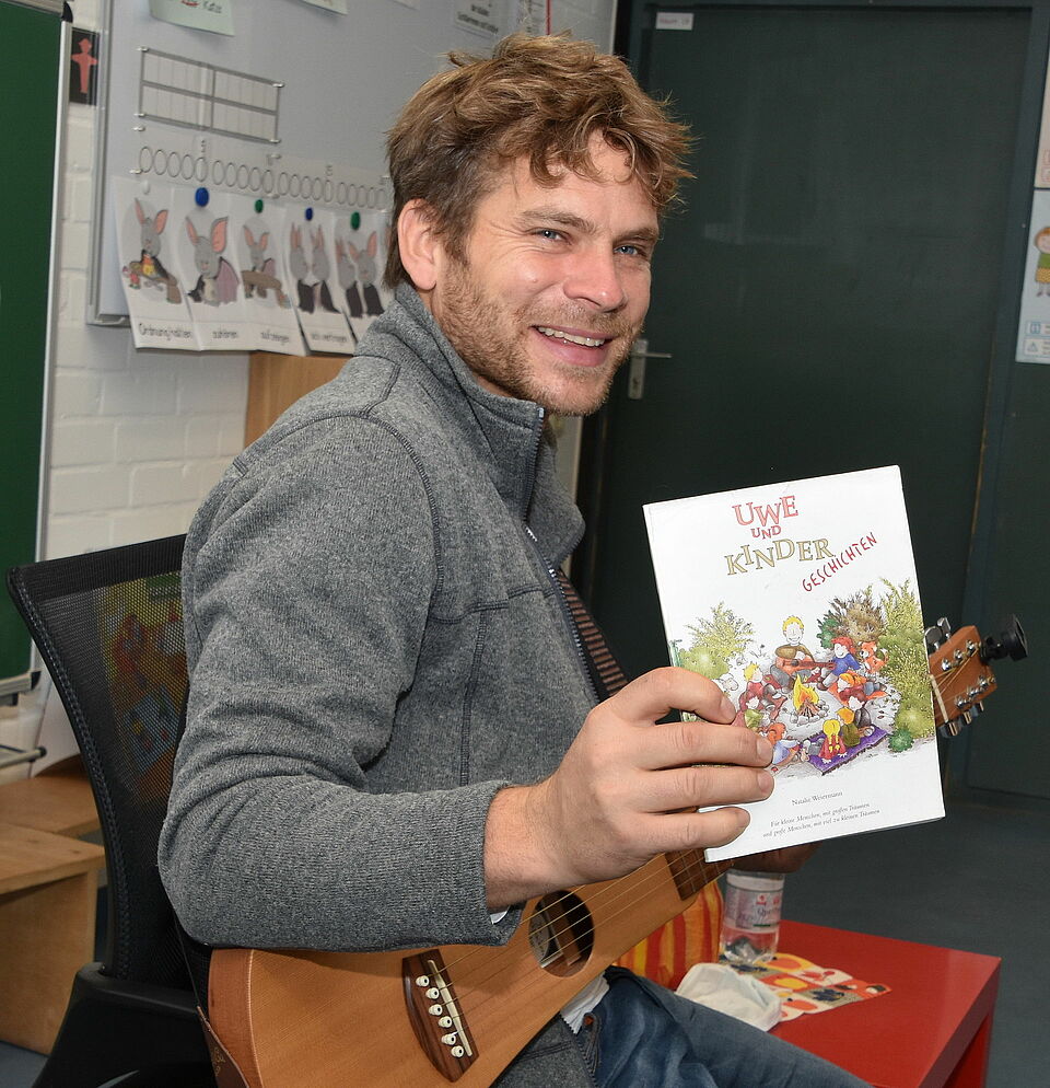 Wobei Uwe Reetz nicht nur ein selbstverfasstes Buch mit Kindergeschichten mitgebracht hatte, sondern auch seine Gitarre. Gemeinsam mit den „Pänz“ stimmte er für den bald nahenden Nikolausabend das Lied „Lasst und froh und munter sein“ an.