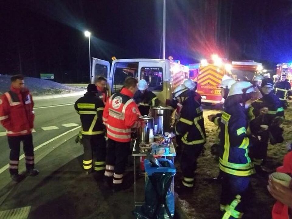 Ein Wohnhausbrand im Stadtgebiet Mechernich sorgte für einen größeren Einsatz der Feuerwehr. In der Nacht von Montag auf Dienstag war auch das Rote Kreuz aus Kall mit Unterstützung aus Mechernich eingesetzt, um bei eisigen Temperaturen mit einer Verpflegungsgruppe alle Kräfte mit Snacks und vor allen Dingen Heißgetränken zu versorgen. Der Einsatz dauerte bis in die frühen Morgenstunden an.