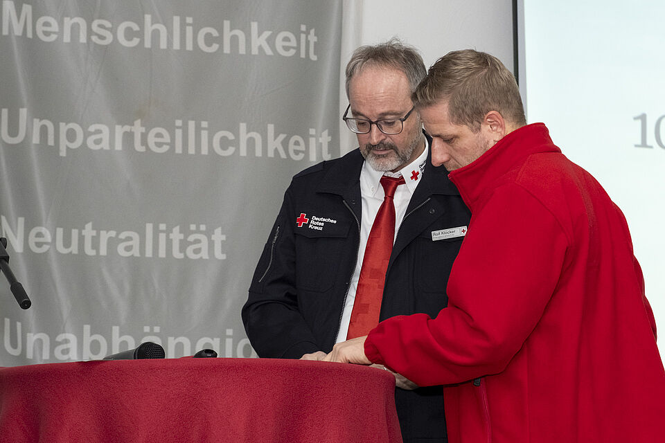 Weil Wilfried Müller nicht mehr zur Wahl stand, wählten die Delegierten Timo Prinz zu seinem Nachfolger als stellvertretender Vorsitzender. Da Prinz zuvor als Vertreter der Kreisbereitschaft im Vorstand saß, wurde hier Christoph Peisch-Thomassen als Nachfolger gewählt. Dessen Beisitzer-Position übernimmt künftig Ralf Klinkhammer. Und noch eine Neuerung gab es. Jasmina Engel ist die neue Leiterin des Jugendrotkreuz und übernimmt die Nachfolge von Nathalie Schwade.