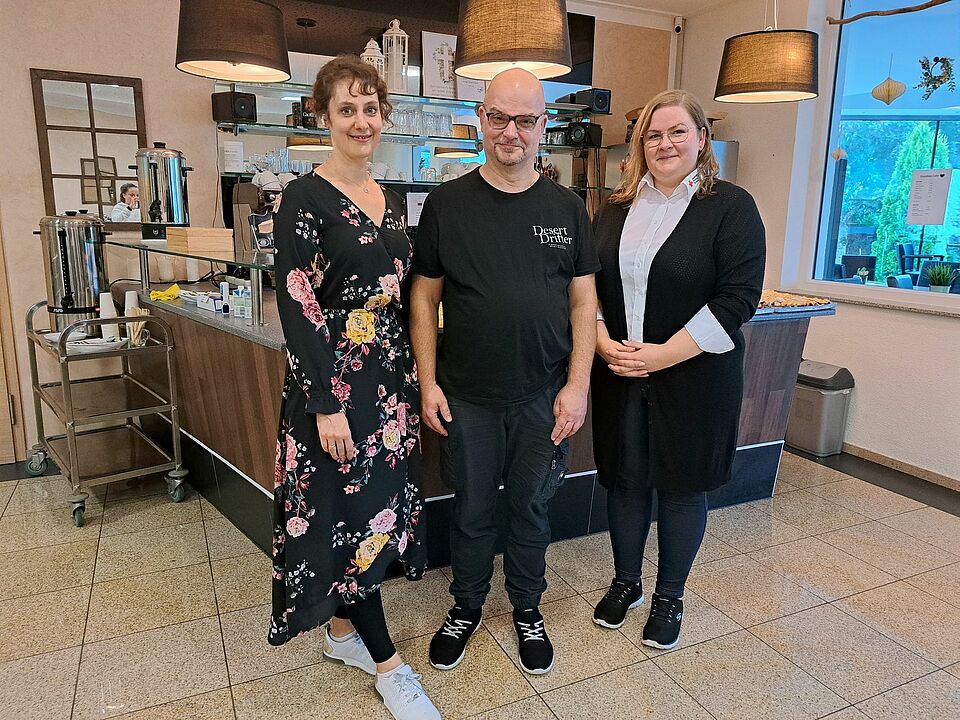 Olga Bormann von der Freien Christengemeinde, Elmar Dalhoff von der Gemeinde Blankenheim und Karoline July vom Rotkreuz-Team Migration/Integration stellten das Begegnungscafé jetzt Boris Brandhoff vor, dem Teamleiter Migration/Integration & Stabsstelle Projektentwicklung und Fördermittel beim Roten Kreuz in Euskirchen.