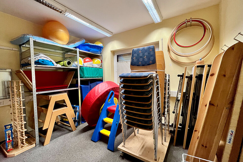 „Alles ist zudem aufgeräumter“, berichtet Maren Dederichs. Denn ein altes Büro wurde zum Lagerraum umgestaltet. Hier lagert all das, was die Kursleitungen für ihre Seminare benötigen. In Zülpich finden nicht nur Angebote des DRK-Kreisverbands Euskirchen statt. „Wir sind auch Regionalpartner des DRK-Landesprogramms ‚Junge Familien in Nordrhein‘“, sagt Maren Dederichs.